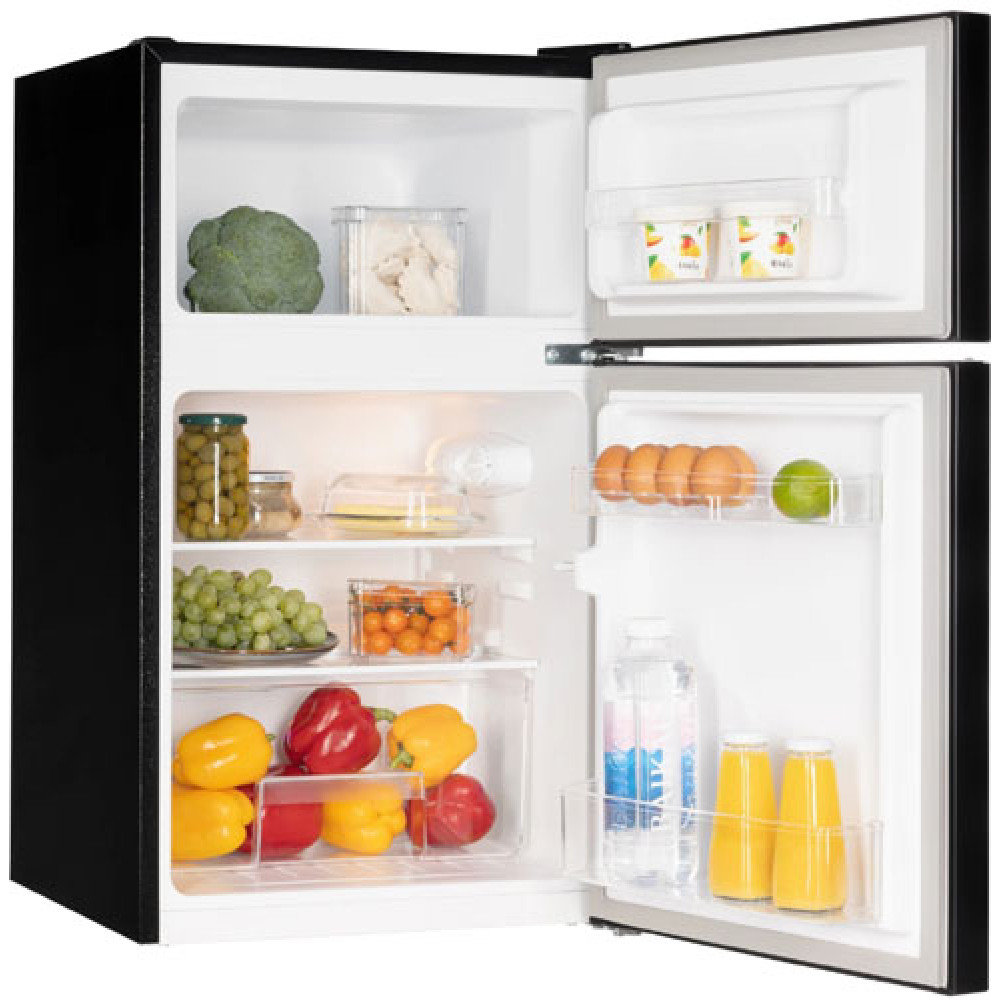 Морозильная камера в верхней части корпуса имеет объем 25 литров и класс заморозки 4 звезды, а также поддерживает температуру –24…–16°C. Мощность замораживания составляет до 2 кг в сутки, а в случае отключения питания камера может автономно сохранять холод до 8 часов. Это полноценное морозильное отделение, подходящее как для кратковременной, так и длительной заморозки.