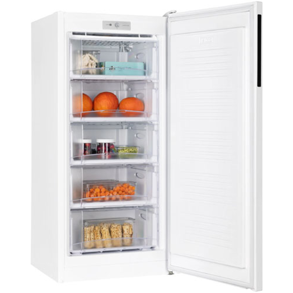 Морозильник белого цвета с черной интегрированной ручкой и продуманным внутренним пространством станет стильным и технологичным акцентом на вашей кухне. Высота устройства 128 см. Для комфортного открытия и установки морозильника в удобном месте — дверь можно перенавесить с правой стороны на левую.