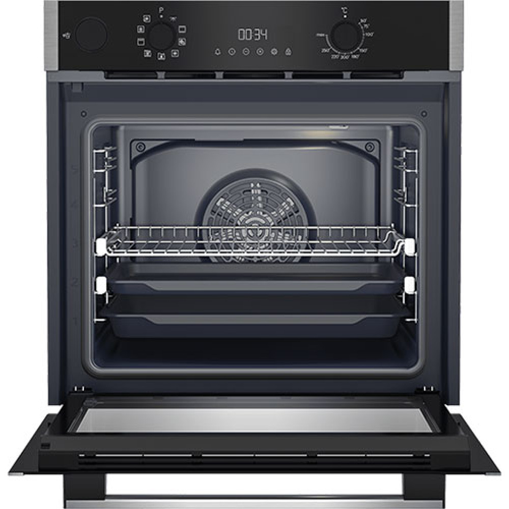 Усовершенствованный механизм плавного закрытия дверцы поможет справиться с неудобствами при эксплуатации стандартных духовых шкафов.